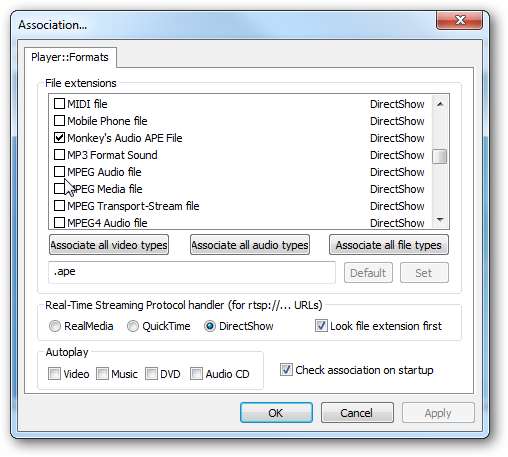 Si desea probarlo y asegurarse de que está satisfecho con el reproductor primero, elija Configuración manual y luego puede elegir los tipos de archivos multimedia con los que asociarlo.