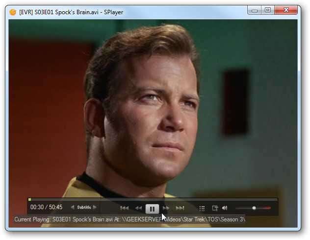 Aquí echamos un vistazo a la ejecución de un video en SPlayer. Observe que los controles del reproductor están en la parte inferior de la pantalla de video.
