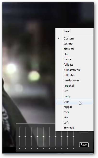 Hay un ecualizador de 10 bandas que puede ajustar manualmente o usar uno de los varios preajustes incluidos.