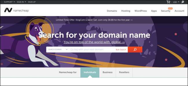 NameCheap es tan barato como sugiere su nombre. Ofrecen excelentes ofertas desde solo $ 8.88 para la mayoría de los dominios .com, y algunas extensiones más oscuras incluso cuestan menos de un dólar. Su DNS tampoco es malo, ya que ofrece protección WhoIs gratuita y un proveedor de DNS robusto que es fácil de administrar y transferir.