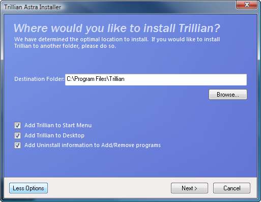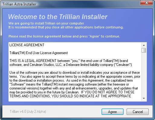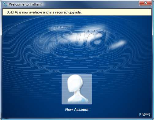 Aquí está la primera pantalla después de iniciar Trillian Astra.