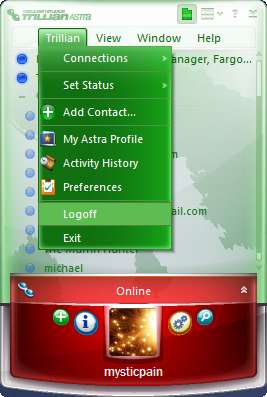 Para aquellos de ustedes que estén familiarizados con Trillian, encontrarán que todas las configuraciones de la cuenta y otras preferencias son prácticamente las mismas que las actuales. Versión 3.1.6.0 . Hasta ahora, la principal diferencia que he encontrado es el atractivo visual con la interfaz de usuario. Otras características nuevas incluyen complementos para MySpace, Rendezvous, Google Talk, AOL, ICQ e IRC. También hay nuevas opciones para videoconferencias y conferencias de voz. ¡Estén atentos ya que pronto tendré más capturas de pantalla y cubriré más funciones avanzadas!