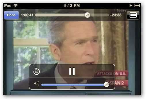 La película se cargó rápidamente y comenzó desde el punto donde la dejamos. Tenga en cuenta que tiene controles básicos de reproducción de video y volumen, como si lo estuviera viendo en una computadora.