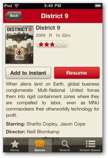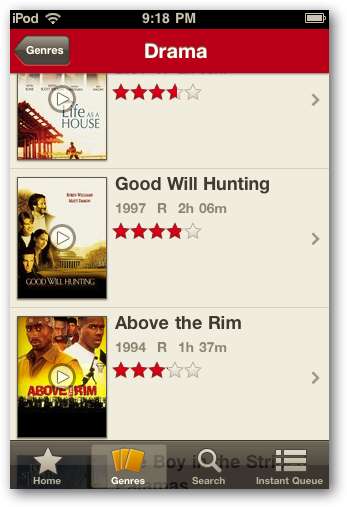 Todavía no proporciona una funcionalidad completa, como administrar DVD en su cola de envío o administrar su cuenta, pero para la navegación general del contenido instantáneo y verlo desde su dispositivo iOS, la aplicación Netflix es definitivamente un ganador.