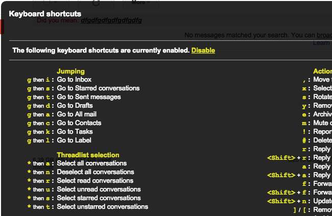 Esto es solo una muestra: visite su aplicación web favorita y escriba ? para encontrar las teclas de método abreviado que puede utilizar allí.