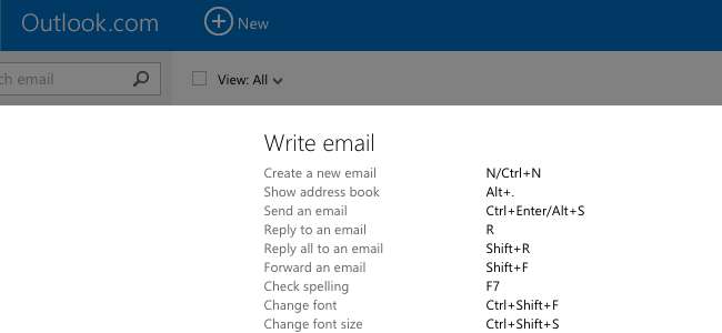 Outlook.com de Microsoft también ofrece una variedad de sus propios atajos. De hecho, también puede habilitar otros estilos de atajos de teclado, por lo que podría usar los atajos de teclado de Gmail en Outlook.com, si está acostumbrado a ellos. Llaves como es para archivar y r para responder trabajo aquí también.