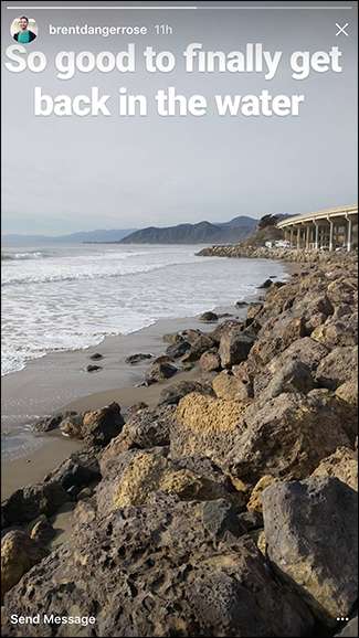 La barra en la parte superior de la pantalla hace una cuenta atrás del tiempo que queda de ese elemento. Toque Enviar mensaje para enviarles una respuesta directa. Toque los tres puntos en la parte inferior derecha para tener la opción de informar la imagen a Instagram si es ofensiva.