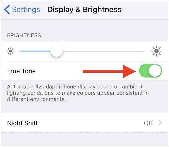 Para habilitar o deshabilitar True Tone, mueva el interruptor correspondiente a la posición de encendido o apagado.