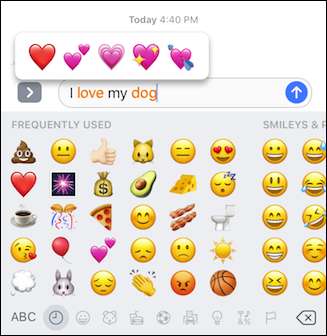 Usemos emojis como ejemplo. En iOS 10, Apple introdujo una nueva función de reemplazo de emoji en iMessage. Escribe la palabra "amor" y puedes reemplazarla con un emoji de corazón. escribe la palabra "perro" y, lo has adivinado, puedes reemplazarla con un emoji de perro.