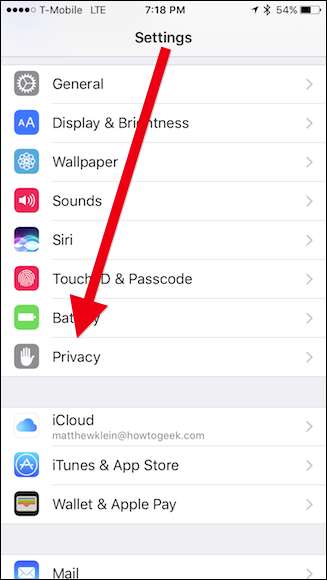 En su dispositivo iOS, toque abrir "Configuración" y luego "Privacidad".
