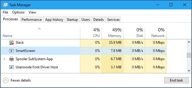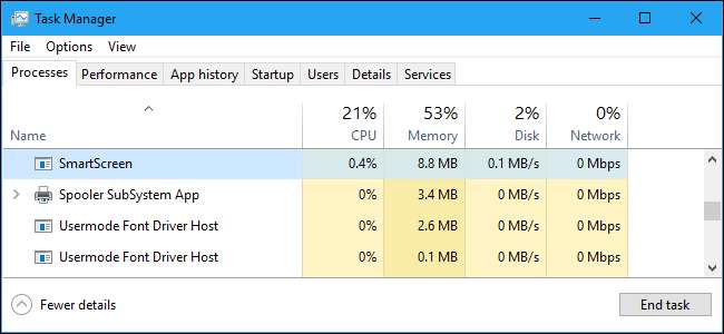 Windows 10 incluye SmartScreen, una función que ayuda a proteger su PC del malware descargado y sitios web maliciosos. El proceso "SmartScreen", con el nombre de archivo "smartscreen.exe", que ve en el Administrador de tareas, es responsable de esta función.