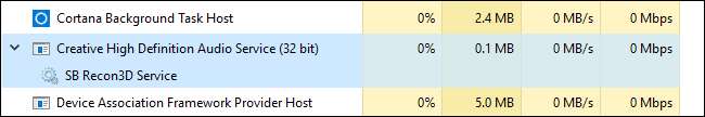 También debe tener en cuenta que con algunos equipos de audio, los fabricantes pueden reemplazar el "Aislamiento de gráficos de dispositivos de audio de Windows" con su propio servicio de procesamiento de señales digitales. Aquí hay un vistazo al servicio utilizado por Creative SoundBlaster Recon3D.
