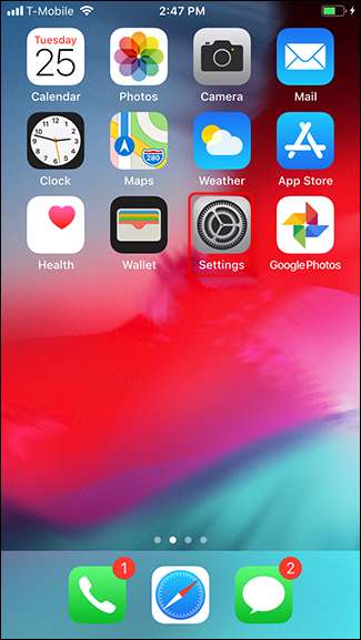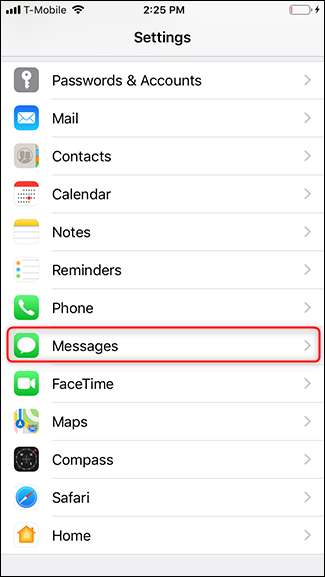 Para cancelar el registro de iMessage, abra la aplicación Configuración, desplácese hacia abajo y luego toque "Mensajes".