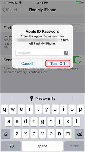 Apague el interruptor, ingrese la contraseña de su ID de Apple cuando se le solicite y luego toque "Apagar".