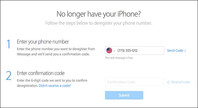 Su número de teléfono ahora está anulado en iMessage, y puede continuar con el restablecimiento de fábrica. Si se perdió este paso antes de deshacerse de su iPhone, no se preocupe. Puedes dirigirte a El sitio de autoayuda de Apple y envíe su número de teléfono para que se cancele el registro. Se le enviará un mensaje de texto gratuito con un código de confirmación. Ingrese el código y estará listo para comenzar.