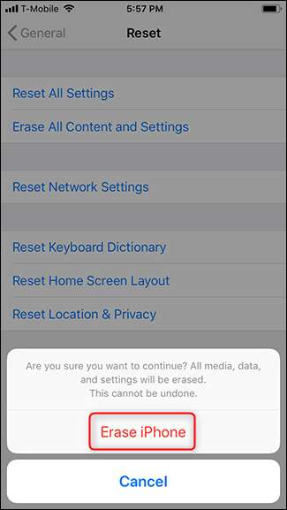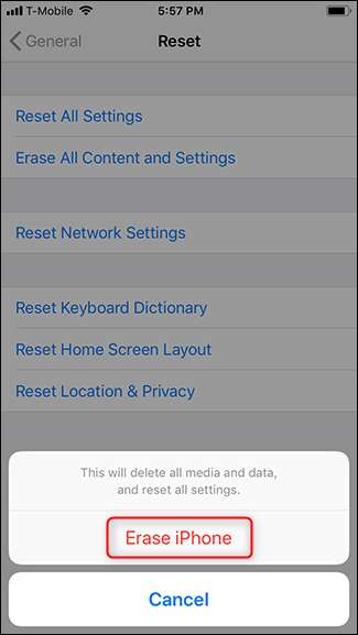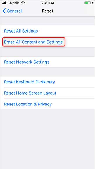 Desplácese hasta la parte inferior y toque Restablecer> Borrar todo el contenido y la configuración.