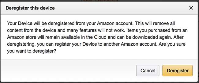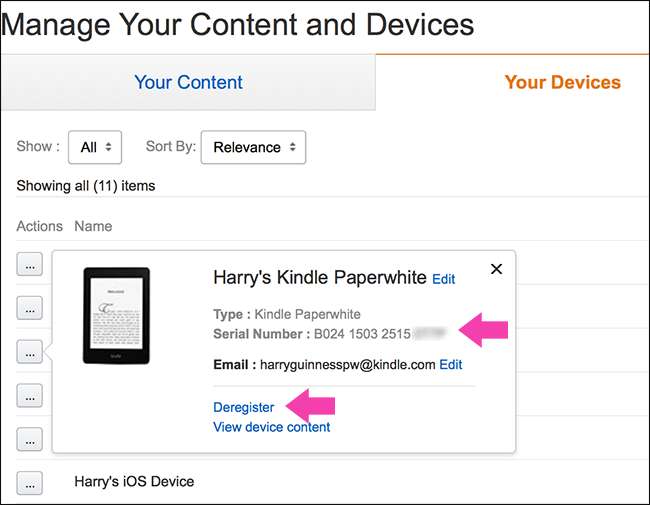 Haga clic en el botón Menú junto al Kindle que ha sido robado y anote el número de serie. Una vez que lo tenga escrito en algún lugar, seleccione Dar de baja.