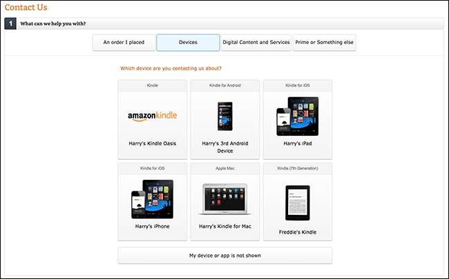 En su lugar, tendrás que dirigirte a Página de contacto de Amazon y rellene el formulario lo mejor que pueda. Las opciones exactas que elija no importan demasiado, ya que solo intenta ponerse en contacto con un representante de atención al cliente. También puede llamar al 00-1-206-266-2992.