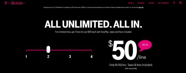 T-Mobile ha estado haciendo olas con sus planes "Todo incluido" , que incluyen impuestos y tasas en el precio base. Eso significa una cosa para ti: sabes lo que vas a pagar y así es mes tras mes.