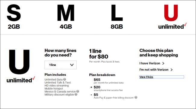 En un giro inusual, Plan ilimitado de Verizon es sorprendentemente sencillo. No hay trámites burocráticos de los que hablar, solo diseños de planos sencillos, simples y fáciles de entender. ¿El problema? Lo mismo con todo lo que hace Verizon: precio.