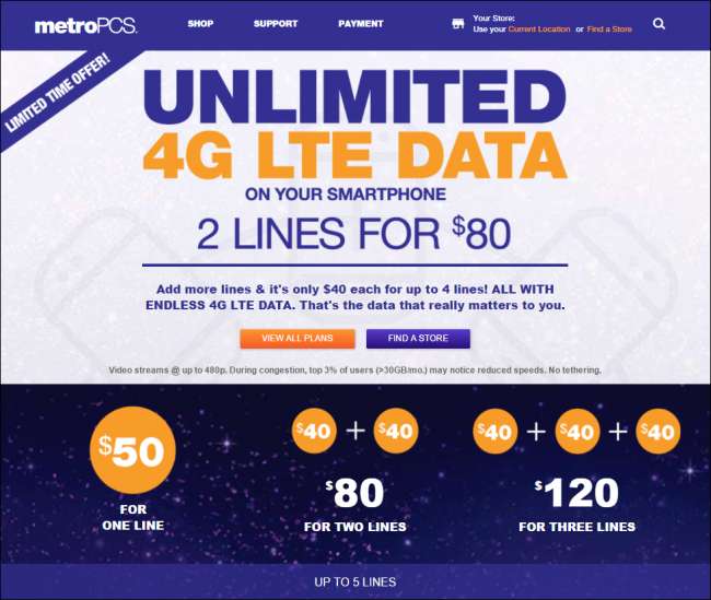 Como puede ver, Verizon tiene un precio ligeramente más alto que casi cualquier otra persona (aparte de AT&T), pero ese debe ser el precio que paga por "la red 4G LTE más confiable del país". En otras palabras, obtiene una gran cobertura y términos ilimitados bastante buenos, pero debe pagar una prima por ello.
