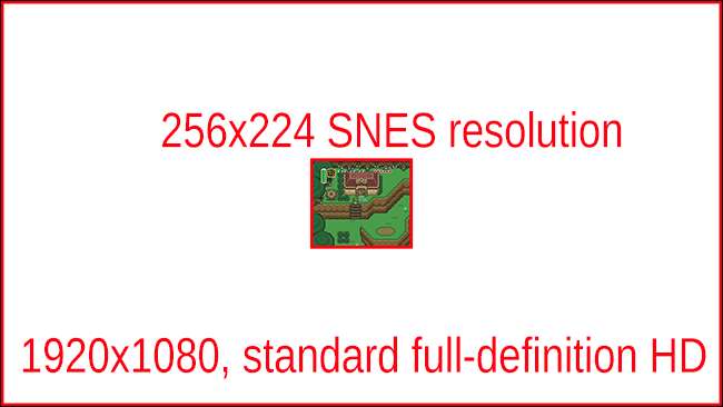 Por ejemplo, la mayoría de los juegos de Super Nintendo Entertainment System utilizan una resolución de pantalla de solo 256 × 224. En comparación con un televisor estándar de 1080p a 1920 × 1080, es prácticamente un sello postal.