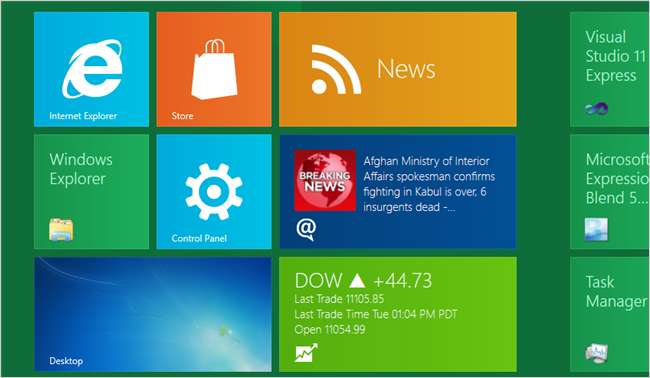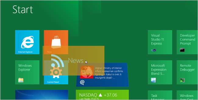 Hay un montón de cosas nuevas en Windows 8, pero el cambio más grande que notará de inmediato es la adición de la nueva interfaz Metro basada en mosaicos, que puede ver en la captura de pantalla anterior. Tenga en cuenta que esta es la versión preliminar para desarrolladores, lo que significa que no está ni cerca de estar terminada, y definitivamente no debería instalarla en su PC principal.