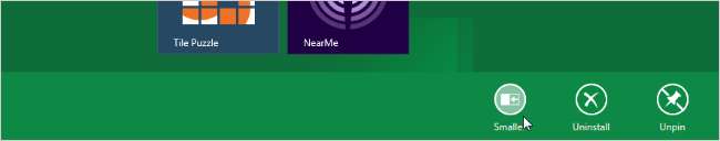 Lo que habilitará un menú en la parte inferior de la pantalla. Dependiendo del mosaico que haya seleccionado, obtendrá elementos para hacerlo más grande, más pequeño, desinstalarlo, fijarlo o desanclarlo.