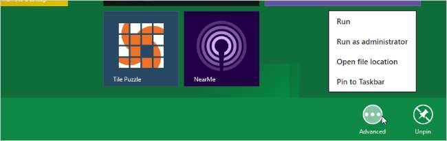 Si hace clic con el botón derecho en un mosaico, verá una casilla de verificación; si está utilizando la interfaz táctil, puede mover el mosaico hacia arriba o hacia abajo ...