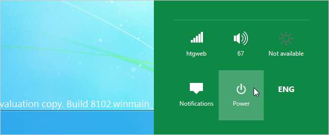 Y aquí hay un primer plano de la esquina inferior derecha, donde encontrará las nuevas opciones de Energía. Desde aquí, puede apagar o reiniciar su PC. Tu también podrías crear un acceso directo en el escritorio para apagar o reiniciar , pero es bueno saber cómo funciona el método integrado.