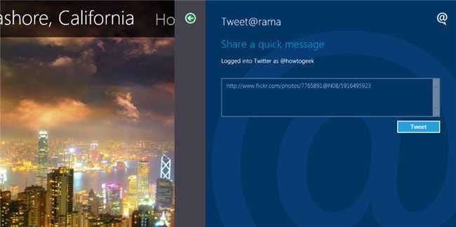 Elija la opción Tweet @ rama, e inmediatamente se le mostrará una ventana de Tweet donde puede compartir directamente en Twitter, sin siquiera salir de la aplicación.