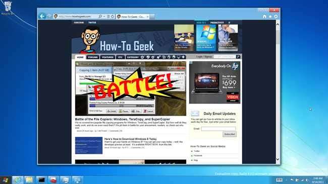 Por supuesto, si iniciara Internet Explorer desde la barra de tareas, en su lugar obtendría la interfaz de escritorio normal. Después de dar una vuelta rápida por el navegador, se siente más o menos igual que IE9, por lo que no hay muchas novedades que informar en este momento.
