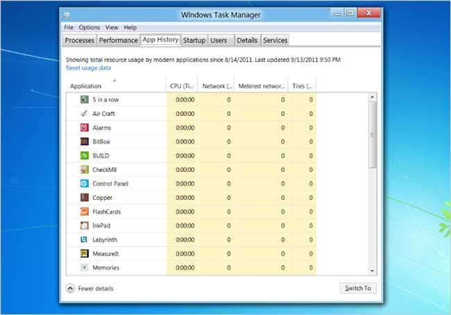 - Suspensión del proceso - Windows puede suspender automáticamente las aplicaciones de Metro para mejorar la duración de la batería cuando no se utilizan.