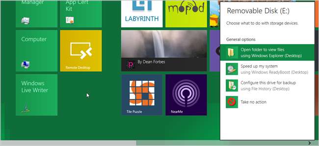 Cuando inserta una unidad USB, verá una nueva interfaz estilo Metro que le preguntará qué desea hacer con esta unidad. Increíble.