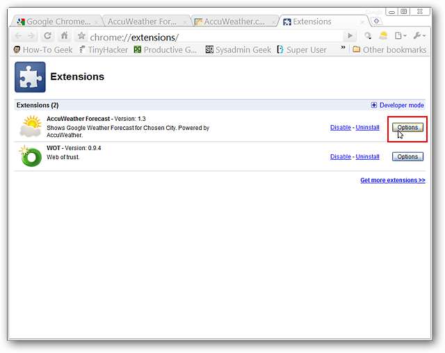 Chcete-li později změnit umístění nebo barvu pozadí, existují dva způsoby přístupu k možnostem rozšíření. První je prostřednictvím „stránky rozšíření Chrome“ ...
