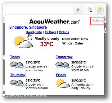 A druhá je pomocí možnosti „Možnosti“ v pravém horním rohu rozevíracího okna počasí.