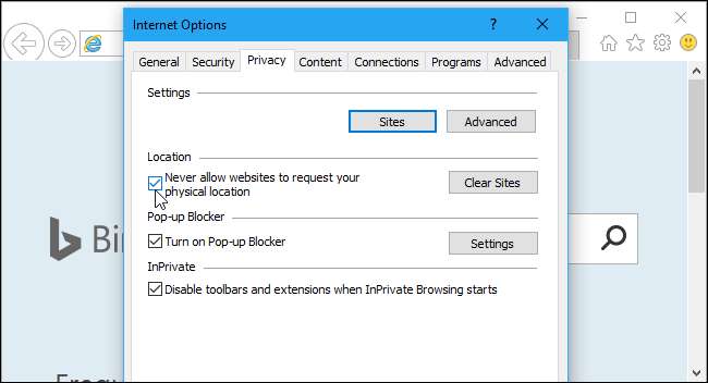 Klikněte na kartu „Soukromí“ v horní části okna a zaškrtněte políčko „Nikdy nedovolit webům požadovat vaši fyzickou polohu“. Kliknutím na „OK“ uložte provedené změny.