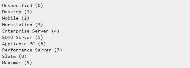 U systému Windows naleznete v následující dokumentaci TechNet, kde zjistíte typ šasi počítače: Identifikace typu šasi počítače