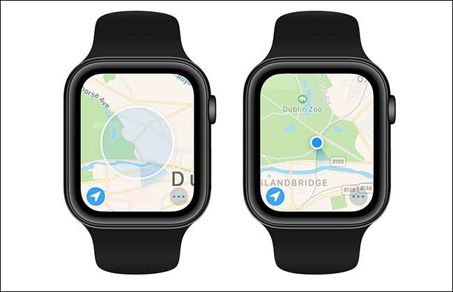 Na hodinkách, otevřete aplikaci Mapy. Chcete-li najít své místo, musí použít lokalizační služby (můžete zkontrolovat v Ovládacím centru, pokud se vám líbí.) A co je nejdůležitější, zobrazí se výsledky přímo před vámi.