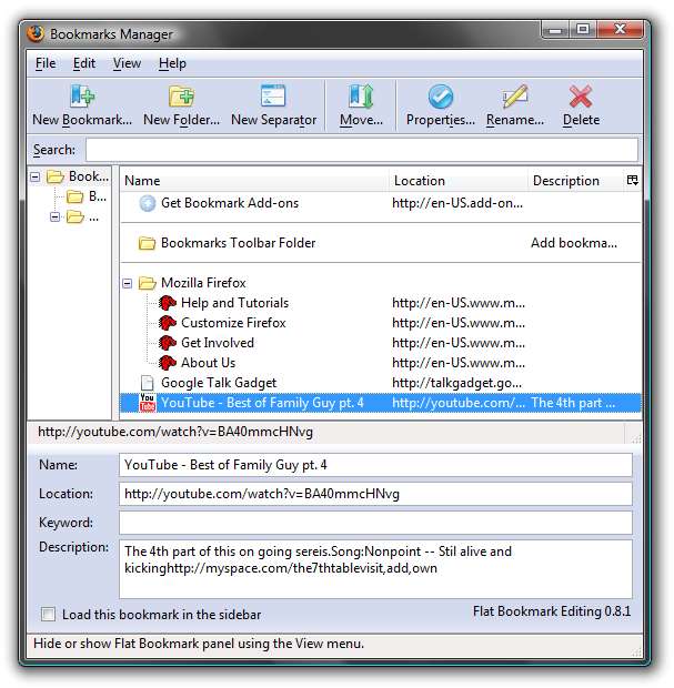 Existuje mnohem lepší způsob úpravy záložek pomocí rozšíření editoru plochých záložek, které eliminuje všechny úpravy vyskakovacích dialogových oken.