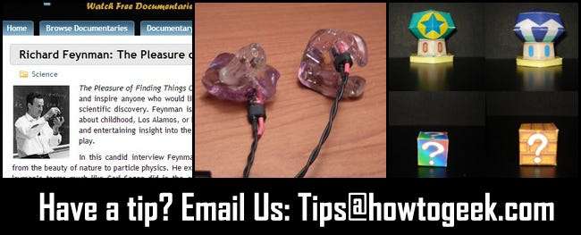 Jednou týdně zaokrouhlujeme některé skvělé tipy zaslané čtenáři, jako jste vy, a sdílíme je se všemi. Tento týden se podíváme na dokumentární weby, vlastní sluchátka a papír Nintendo.