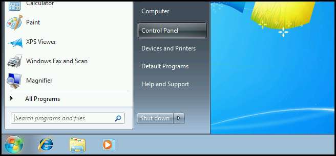 Klikněte na Start Orb a otevřete Ovládací panely.