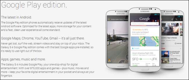 Zařízení z edice Google Play nabízejí jinou cestu. Chcete Samsung Galaxy S4 pro vyměnitelnou baterii a dobře zkontrolovaný fotoaparát, ale nelíbí se vám software společnosti Samsung? Můžete si koupit Galaxy S4 edici Google Play, abyste měli to nejlepší z obou světů.