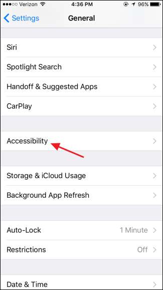 Na stránce Obecné nastavení klepněte na Přístupnost.