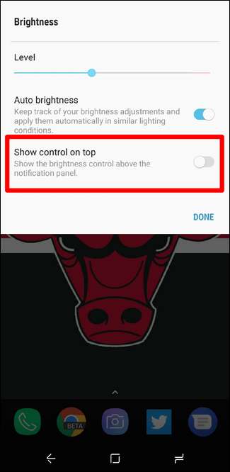 Boom - právě tak se lišta jasu nyní zobrazí na samém vrcholu stínítka oznámení, těsně pod užším seznamem rychlých přepínačů. Nemáš zač.