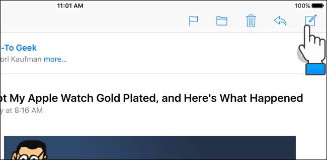 V aplikaci Pošta klepnutím na čtvercovou ikonu tužkou vytvořte novou e-mailovou zprávu.