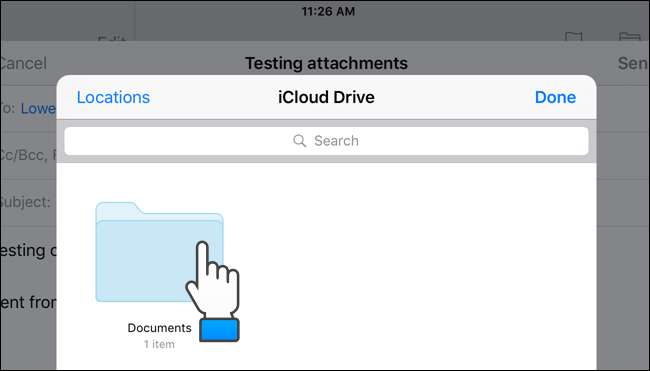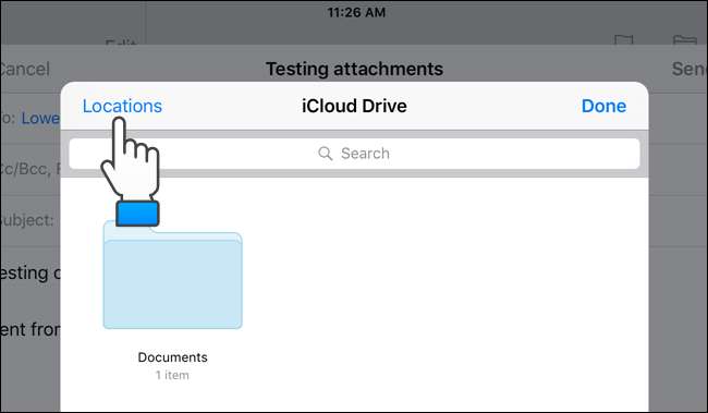 Zobrazí se dialogové okno, které vám umožní vybrat soubor. Ve výchozím nastavení se otevírá na iCloud Drive. Můžete však vybrat soubory od jiných poskytovatelů úložiště registrovaných ve vašem zařízení. Chcete-li připojit soubor z jiného umístění než iCloud Drive, klepněte v levém horním rohu dialogového okna na „Místa“.