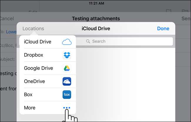 Ve vyskakovacím okně se zobrazí seznam poskytovatelů úložiště registrovaných na vašem zařízení. Mohou to být aplikace, které mají své vlastní místní úložiště nebo aplikace pro cloudové úložiště, například Dropbox, Google Drive, OneDrive a Box. Klepněte na poskytovatele úložiště, kde se nachází soubor, který chcete připojit.