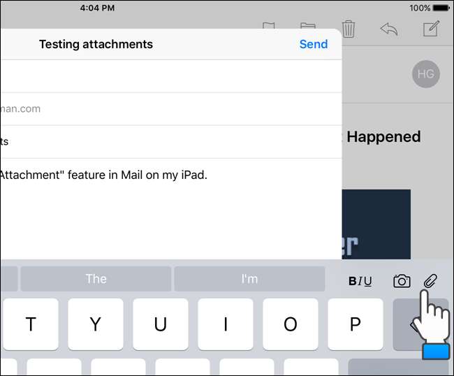 K dispozici je také zkratka pro přidávání příloh k e-mailům v aplikaci Pošta, pokud máte prediktivní text funkce na. Na pravé straně prediktivního textového pruhu je ikona kancelářské sponky, na kterou můžete klepnutím přejít do dialogového okna pro přidání příloh.