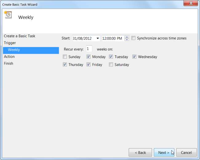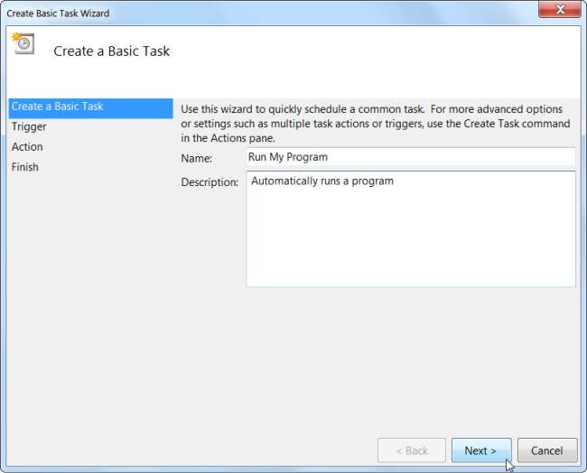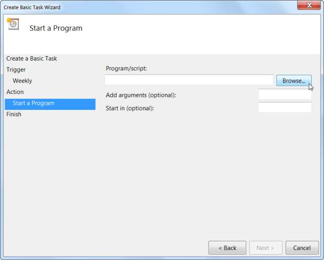 Chcete-li spustit program, klikněte na tlačítko Procházet a vyhledejte soubor .exe programu na pevném disku - většina programů bude umístěna v části Program Files na jednotce C :. Vyberte program a ten se spustí automaticky v naplánovaný čas - například pokud vždy používáte určitý program v 13:00, můžete nechat Windows automaticky otevírat program v 13:00 každý pracovní den, abyste nezapomněli.